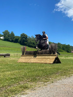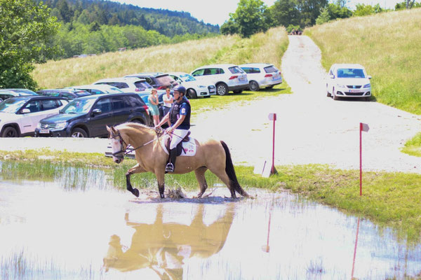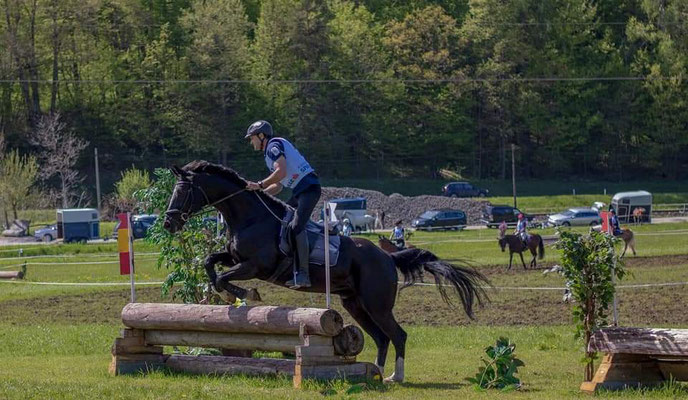 Nach einer starken Dressur, bei der er mit Barahir den 6. Platz erritt, ging es gestern auf die anspruchsvolle Geländestrecke.