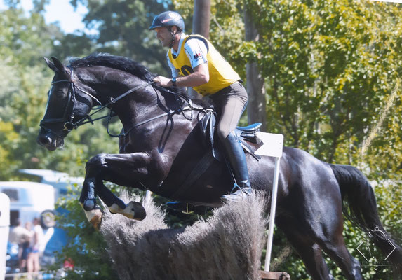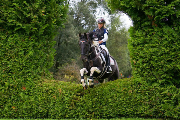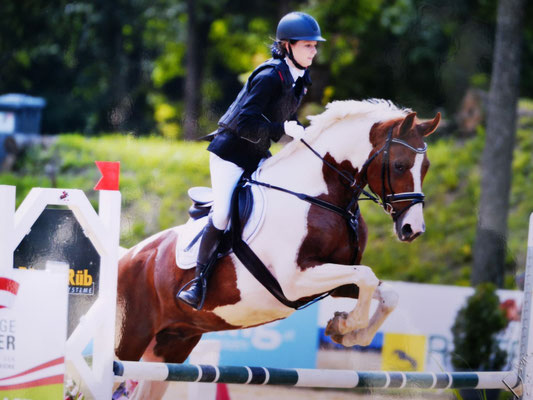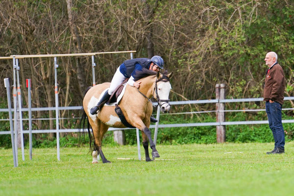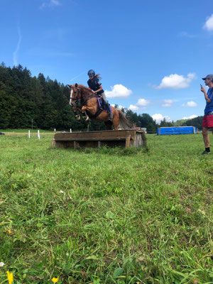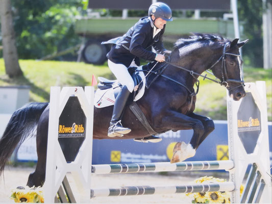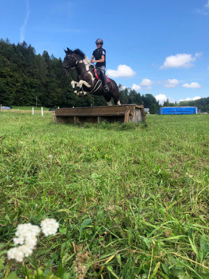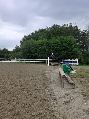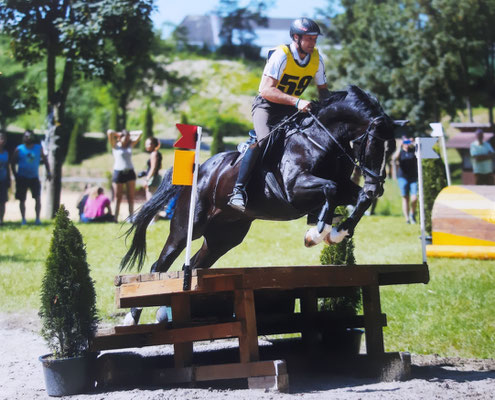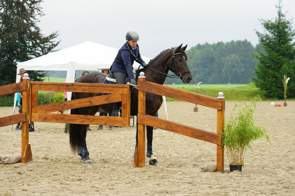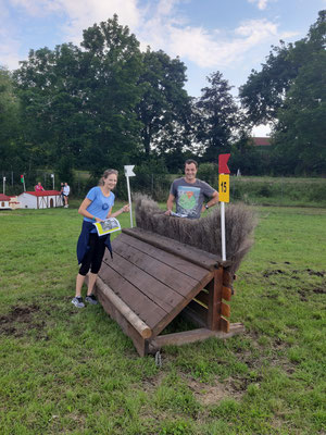 Nach der Dressur ging es in den Springparcours, den Martin und Julia beide in der Zeit und ohne Abwurf absolvieren konnten, obwohl sie aufgrund eines Fehlers im Zeitmanagement weder eine Besichtigung der Linienführung noch eine Vorbereitung am Abreiteplatz hatten.