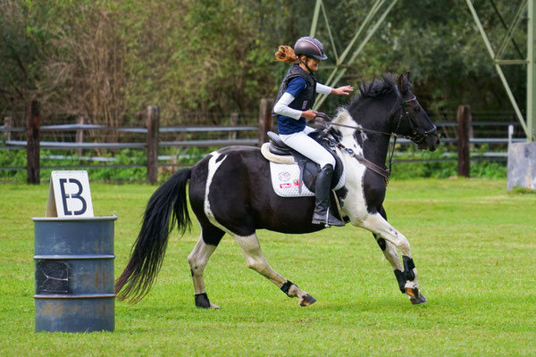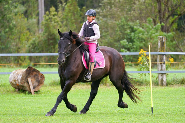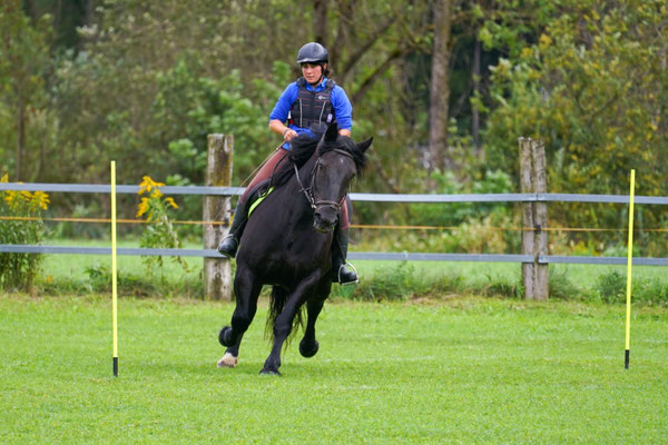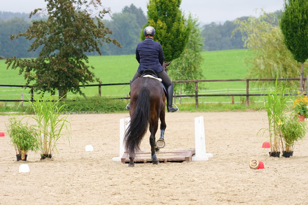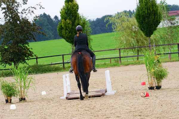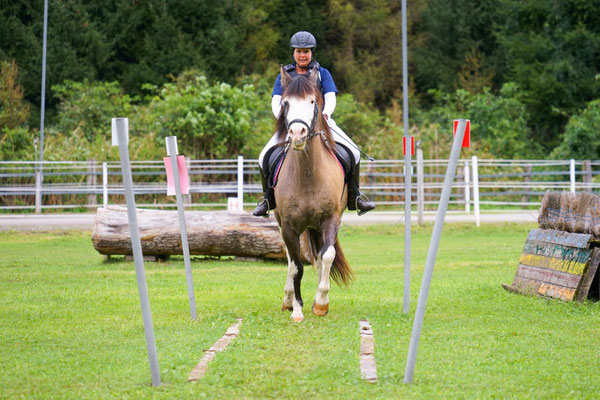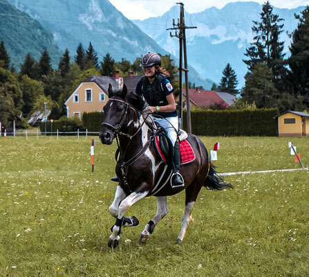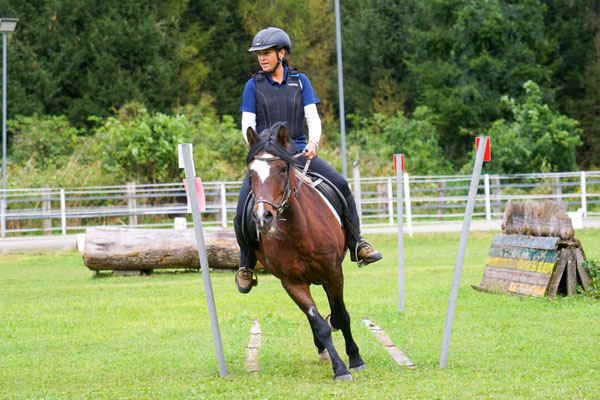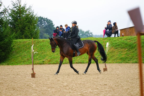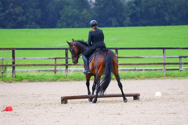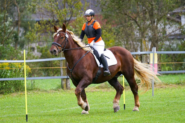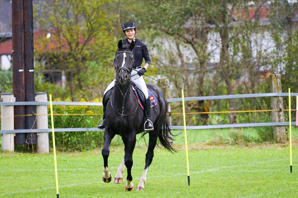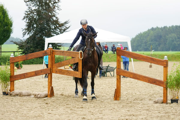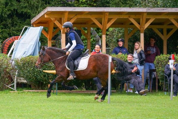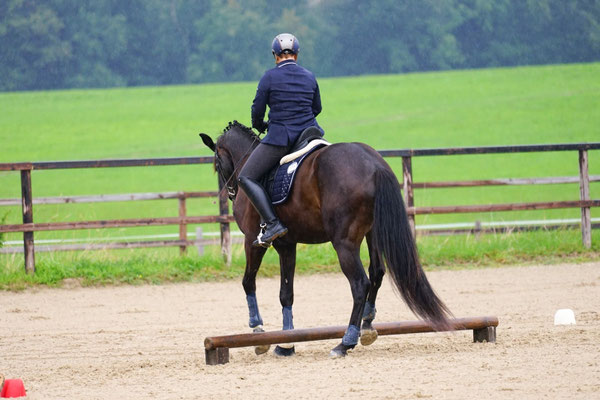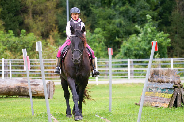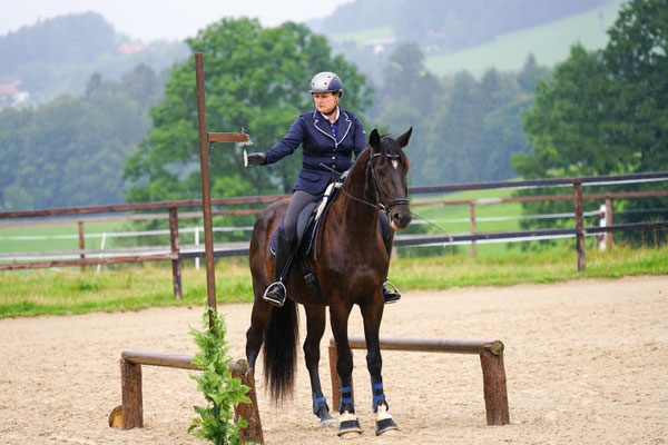 Nach erfolgreicher Dressur im strömenden Regen am Samstagvormittag ging es am Nachmittag zum Stiltrail, den Sandra Mascher und Maddalena Tschojer beide mit guten Wertnoten absolvieren konnten.