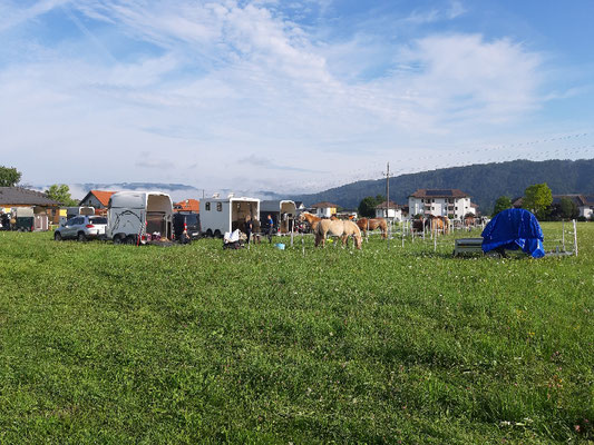 Da der Wetterbericht für Sonntag Sonnenschein prophezeit hatte, wurde kurzerhand gestern Abend der Trailparcours im Mondschein von allen gemeinsam auf den großen Platz übersiedelt, damit alle das großartige Panorama und das Wetter genießen konnten🐎🌞🕶.