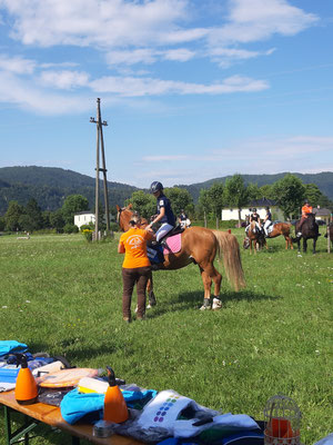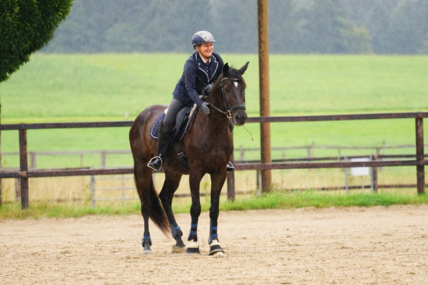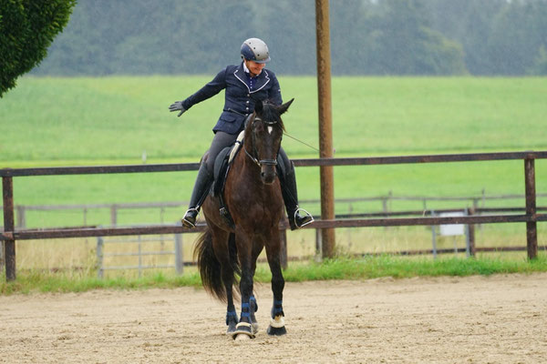 Am Sonntag hieß es dann auf zum Speedtrail, der aber durch die schwierigen Bodenverhältnisse durch den Dauerregen, Windböen und erneutem Niederschlag deutlich an Geschwindigkeit verlor, da kein Reiter das Risiko eingehen wollte, sich und sein Pferd in Gefahr zu bringen.